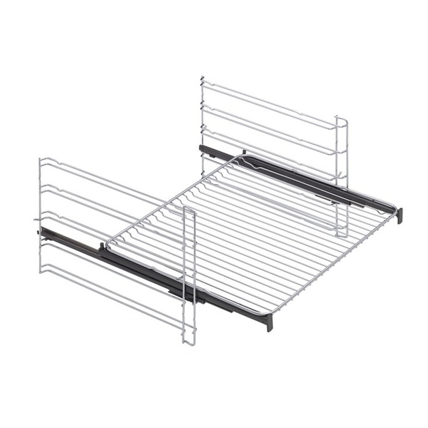 Lekker gasstekeovn for innbygning med front i sort glass. Dobbel dør og håndtak/brytere i rustfritt stål.