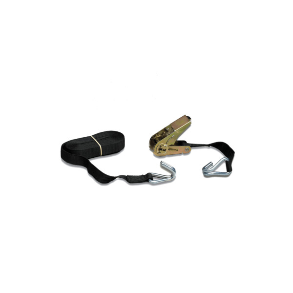 Solid jekkestropp til sikring av last på bil og henger i svart farge, med en robust stroppejekk og slitesterke stropper. Kommer i to deler: én kort stropp med jekk og krok og én lang stropp med krok. Fås i ulike varianter med varierende lengder, lastkapasitet og type kroker.