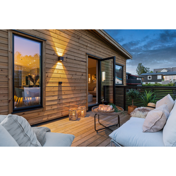 Dobbelfals 28° - Gammel type er en av de mest benyttede liggende kledningene i Norge. Den har en uhøvlet forside og er falset på begge sider, den skrå kanten er 28°. Alvdal Royal behandlet kledning er formstabil, har lang levetid og begrenset vedlikeholdsbehov. Behandlingen har UV beskyttelse, er transparent og gir kledningen fargenyanser avhengig at trestruktur. Dekningsmål - Produktet har en dekningsbredde på 130mm, dette tilsier 7,7lm pr m2