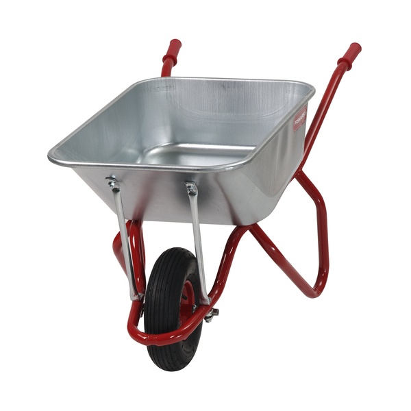 Selvbygger trillebår. Galvanisert kasse. Håndtak i gummi som sikrer godt grep.