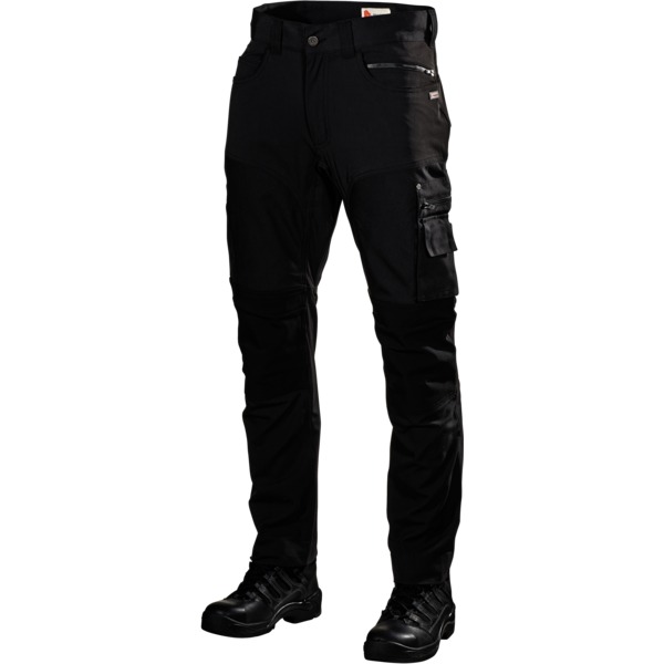 Bukse med stretchstoff rundt knær, i front og over baken for ekstremt bra bevegelighet, komfort og pusteegenskaper. Kraftig halvpanamavev gir meget bra slitestyrke. Forbøyde knær, stretch og en smalere passform bidrar til god fleksibilitet. Passer med jakke 225PB og er nedleggingsbar med 5cm. Buksen har forsterkede knelommer i stretchkevlar, fire framlommer og innvendig lomme for knebeskyttelse. Innfelte stolpelommer bak ivaretar bevegeligheten. På høyre ben er det tommestokklomme med blyantholder og knivholder. Venstre ben har lårlomme med glidelås og to telefonlommer. Bukse med stretchstoff rundt knær, i front og over baken for ekstremt bra bevegelighet, komfort og pusteegenskaper. Kraftig halvpanamavev gir meget bra slitestyrke. Forbøyde knær, stretch og en smalere passform bidrar til god fleksibilitet. Passer med jakke 225PB og er nedleggingsbar med 5cm. Buksen har forsterkede knelommer i stretchkevlar, fire framlommer og innvendig lomme for knebeskyttelse. Innfelte stolpelommer bak ivaretar bevegeligheten. På høyre ben er det tommestokklomme med blyantholder og knivholder. Venstre ben har lårlomme med glidelås og to telefonlommer.
