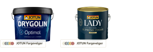 Fargevelgeren gjelder for maling fra Jotun. Velger du et Jotun-produkt på nettsiden vår, kan du velge fargen direkte før du legger malingen i handlekurven.