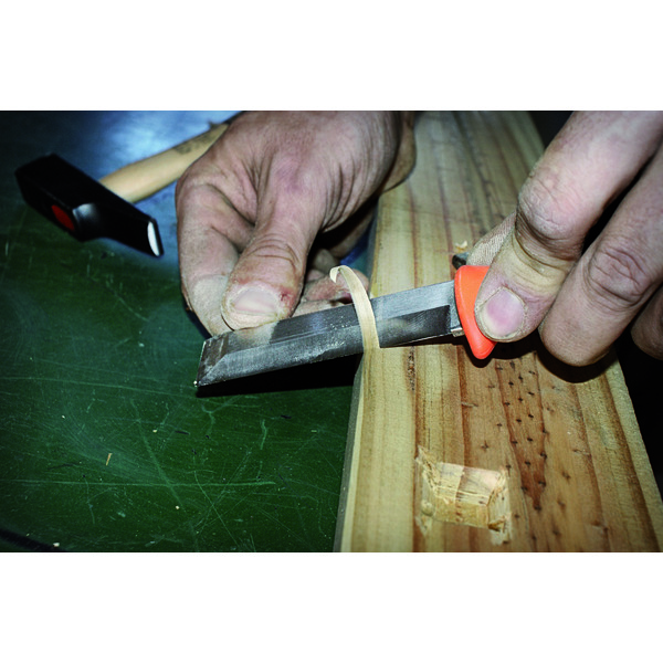 Huggjernkniv for rivningsarbeid. Bruksområder omfatter å lage tappforbindelser i dører eller kløyving. Ekstra kraftig produkt av slagfast PPE-plast med splintbeskyttelse. Herdet klinge som holder seg skarp lenge. 4mm tykt blad Spesialslire for oppbevaring og transport Robust slirekniv for snekker og grovarbeide