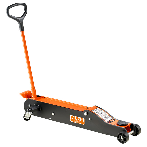 Jekk ekstra lang 5T 5T ekstra lang garasjejekk gir lang rekkevidde under kjøretøyet. Ekstra kraftig stålkonstruksjon for maksimal holdbarhet. Robuste stålhjul. Stor og behagelig fotpedal, lett tilgjengelig både fra høyre og venstre side av løftepunktene. Håndtak i komposittmateriale for trykk og komfortabel bruk. Stort innebygget trau for oppbevaring av verktøy, skruer, bolter etc. Ø110 stålsadel, inkludert en Ø95 mm gummipad med 12 mm tykkelse som beskytter mot skader på bilens understell. Utrustet med sikkerhetsventil og kontrollert hastighet ved nedsenking. Ce-sertifisert